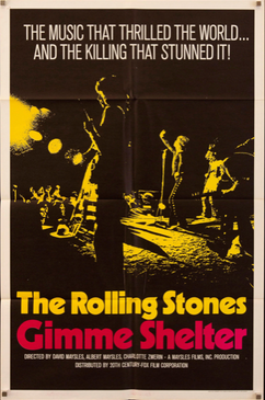Booth's book, Jagger and Richards on stage in 1969 by Michael Ochs, poster for Gimme Shelter